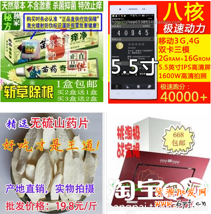 ③文字區(qū)域在圖片中央,透明度低、面積大且顏色鮮艷,妨礙到正常寶貝的觀看
