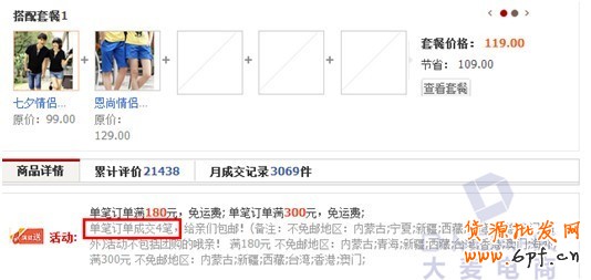 由于情侶裝的客戶群比較特殊,一般都是男女兩件一起購買,因此可以通過滿就送活動,一次購買4件送包郵。這在提高效率的同時也大幅度的提高了客單價。