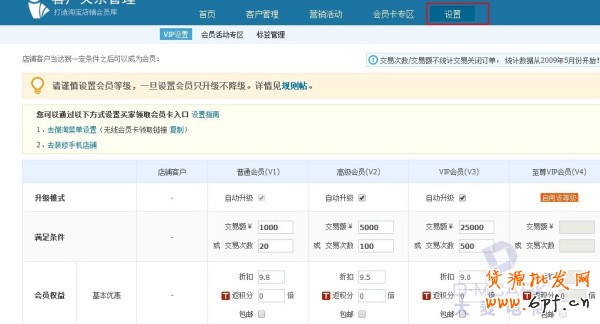 首先我們需要在設置里面設立會員等級制度,點擊保存之后回到會員卡專區就能激活會員卡(注:這里需要主賬號才能設置,激活之后需要在子賬號管理里面授權給子賬號操作)