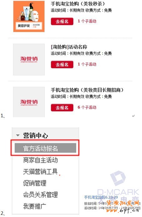1、淘營銷——商家整體營銷的專業平臺,里面綜合了各類目大大小小的活動報名入口:聚劃算、淘寶清倉、天天試用等等。