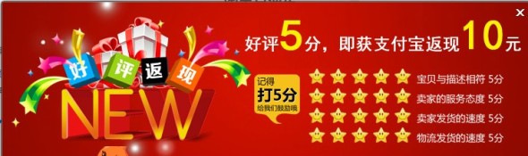 影響寶貝轉(zhuǎn)化中,其他顧客的評(píng)價(jià)也是至關(guān)重要的,如果差評(píng)很多,其他消費(fèi)者在購(gòu)買的時(shí)候就會(huì)有多重的顧慮,而好評(píng)很多的話,消費(fèi)者會(huì)有一種從眾心理進(jìn)而購(gòu)買寶貝。為了增加好評(píng),可以做好評(píng)返現(xiàn)、好評(píng)返券的活動(dòng)。這樣就可以增加好評(píng)。
