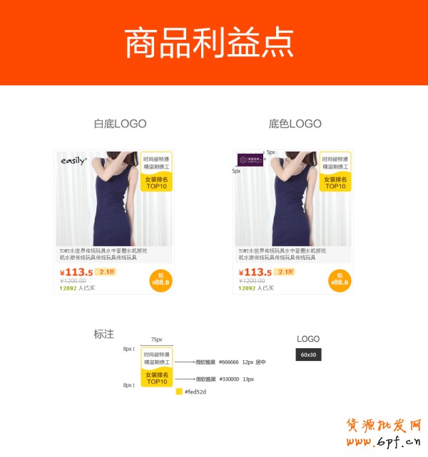 - 右側(cè)的商品利益點(diǎn),請(qǐng)?zhí)釤捥顚懮唐纷钪匾睦纥c(diǎn)文案,按照規(guī)范要求的字體,顏色,大小制作,不可隨意更改