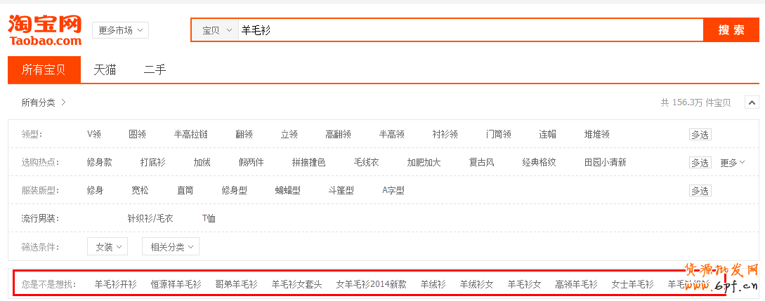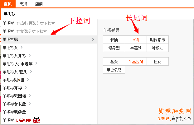 1、通過淘寶的下拉詞、長尾詞和相關詞。