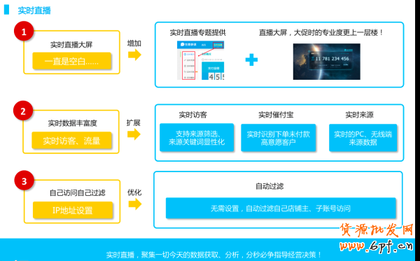 2)、實時直播功能比量子新增直播大屏,實時催付寶,自動過濾自己店鋪訪問id,數(shù)據(jù)指標更豐富