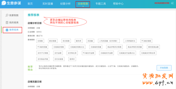 店鋪分析周報,每周一次的核心指標的匯總數(shù)據(jù),提供最近4個自然周的店鋪流量與銷售相關的數(shù)據(jù)查詢。