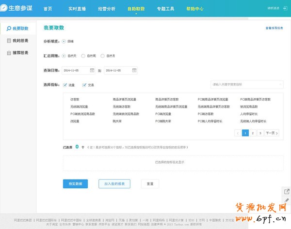 “自動取數“是生意參謀平臺很實用的功能。賣家自行選擇一些字段,便可讓系統自動生成店鋪某段時間內的經營數據,并可制成報表供下載分析使用,非常方便、快速。