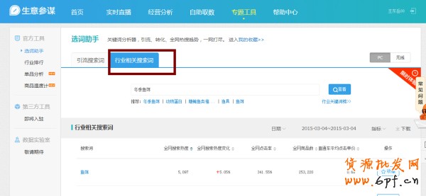 專題工具這個模塊很不錯,特別是在關鍵詞和單品分析這塊。我是每天都看,看的是行業關鍵詞還有入店關鍵詞的一個變化,如發現有些關鍵詞波動比較大的話要重點的關注,增長比較大的關鍵詞要考慮是否加入自己的寶貝標題中,提示標題更換關鍵詞要慎重,不可更換太多字符否則容易被認為換寶貝就得不償失了,相信大家對于這款比我懂的多多了,這里就不多說了。