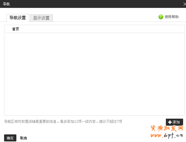 店鋪的導航是顯示在店招下面,進入以下頁面點擊“添加”導航的內容可以自己選擇的,選好之后點擊“確定”(如下圖)