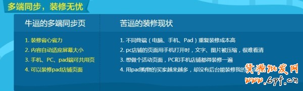 但實際上有一些頁面的內容是可以共用的,比如做一個促銷活動頁、臘八搶年貨、好評有禮等頁面,甚至店鋪首頁,都是可以在不同終端共同使用的。PC上裝修一次,直接同步到手機、pad端,so easy!