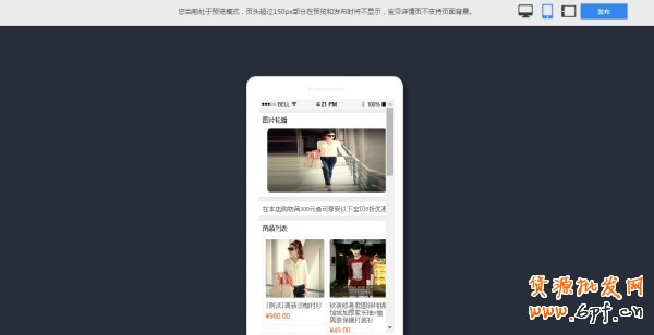 點擊不同終端的圖標可切換pc、手機、pad端頁面的預覽效果。pc端預覽效果: