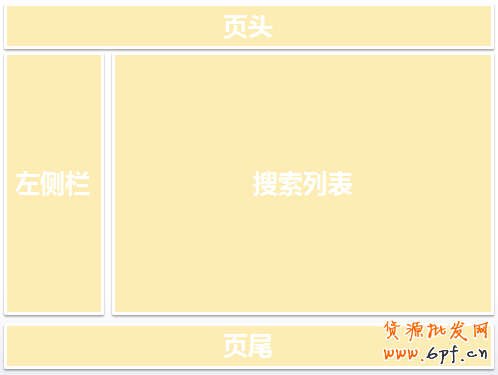 頁(yè)頭;左側(cè)欄;搜索列表;頁(yè)尾
