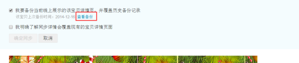 3、如果在一個寶貝已經有備份的時候,再次同步時,可以查看已經備份的,再考慮要不要替換,操作如下圖: