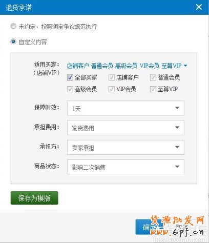 這些問題不需要再擔(dān)心,交易約定二期新功能能讓您更加自主設(shè)置“針對哪些會員開放服務(wù)”,充分享受服務(wù)自主承諾。已上線的破損補(bǔ)寄、退貨承諾、品質(zhì)承諾三個交易約定,可以設(shè)置服務(wù)適用人員,例如:商品提供15天無理由退貨,退貨和發(fā)貨郵費由賣家承擔(dān),店鋪vip級別3級以上會員才能享受,V3以下的買家享受基礎(chǔ)的服務(wù)保障。