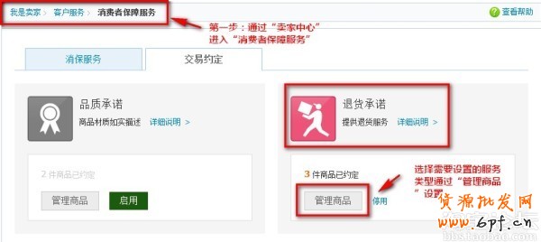 賣家可進(jìn)入“賣家中心”通過“消費者保障服務(wù)”-“交易約定”管理模塊進(jìn)行設(shè)置