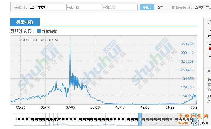 第一步,讓我們?cè)谔詫氈笖?shù)中搜索“真絲連衣裙”,看最近一個(gè)月(3.1-3-24)的數(shù)據(jù):