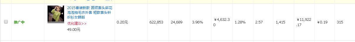 關(guān)鍵詞的轉(zhuǎn)化效果較為好點,主要是一些短款,春毛衣相關(guān)的詞。