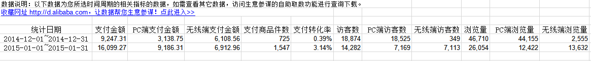 以上截取的是生意參謀1月份至今每周的數據情況以及12月和1月整體的數據情況,都可以看到服務以來店鋪穩步提升情況。