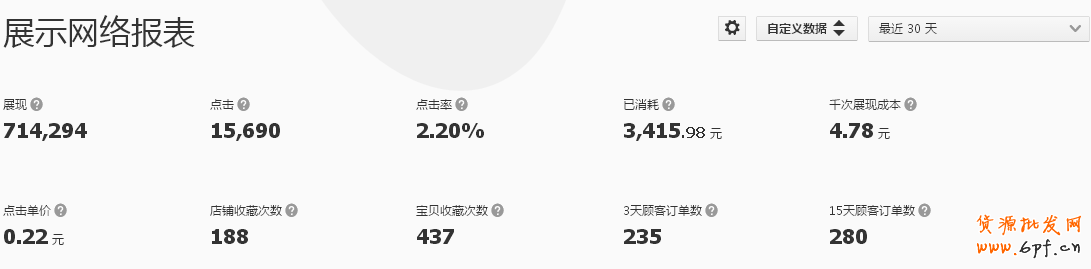 從上圖可以看出,根據這家店客單價60計算,圖中所截取時間段的3天回報率估算一下約為4.13左右,15天回報率約為4.92。整體點擊率、cpc、回報率的數據都比較好。