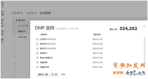 方法二、進(jìn)入鉆展后臺(tái),點(diǎn)擊計(jì)劃,選擇一個(gè)營(yíng)銷計(jì)劃,點(diǎn)擊編輯,在定向管理里面增加定向,選擇DMP定向