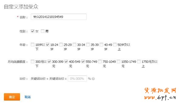 最后一部分自定義人群,這一塊引流的時(shí)候把淘寶客戶(hù)群根據(jù)性別、年齡和月消費(fèi)額度進(jìn)行限定,把店鋪的寶貝推送到更需要的客戶(hù)面前;這部分流量比較大,在做推廣的時(shí)候可以好好利用。