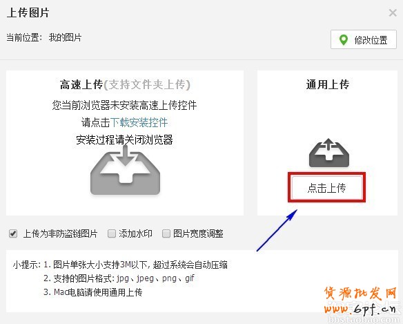 如果您是通過圖片空間上傳圖片,直接點擊“上傳圖片”按鈕。