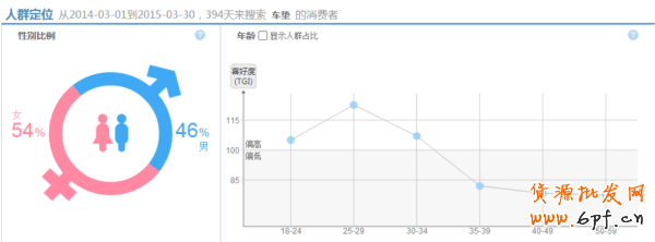 3、從人群定位來看,男女消費比例較均衡,年齡階段以20到30歲為主。