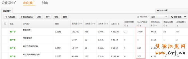 以上截取了過去14天的效果,整體數據來看,效果還是不錯的,定向效果roi達到10.99,這是一個令人欣喜的數據,再看收藏也是不錯的,這也說明定向的潛力還是蠻大的,可以重點挖掘定向這塊。