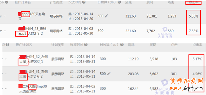 從鉆展后臺的數據可以看到,在相同展位投放的對比下,采用大數據處理的計劃點擊率普遍比原計劃提升1%~2%。