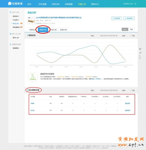 生意參謀單品SKU銷售分析,統計了多個維度的數據供商家進行趨勢分析及決策判斷。