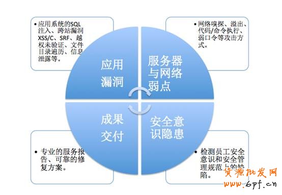 滲透測試服務包括對應用漏洞、服務器與網絡弱點、安全意識隱患等進行針對性探測,并最終以專業的服務報告及可靠的修復方案提交。滲透測試往往可以發現較其他非滲透手段更為深入、準確和隱蔽的系統風險。