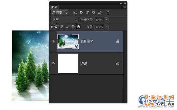 如果在移動工具選項欄沒有勾選自動選擇的話,需要按住Ctrl + Alt 點擊圖層才能選中鎖定的風景圖層。