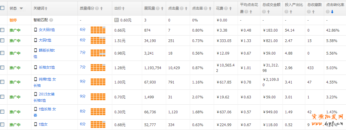 5、寶貝點擊率這塊,可以多測試圖片 標題來提升,寶貝點擊率高,質量得分上升的快,花同樣的錢,流量會比較多,ppc會低。