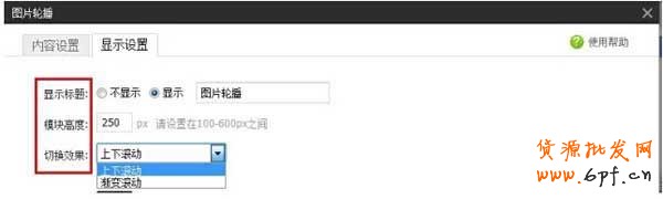 在顯示設置頁面,可以選擇顯示標題、模塊高度、和切換效果的。
