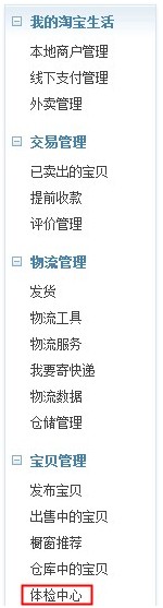 第二步:在頁面的最左側(cè)找到“寶貝管理”,點擊“體檢中心”;