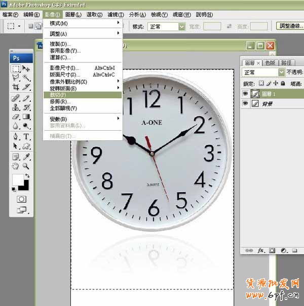 選取你喜歡的范圍,然后裁切,當然你還可以繼續調整透明度,或是重新再拉漸層,以得到滿意的倒影效果。