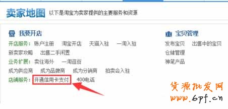 單擊打開賣家地圖,會看到各種窗口地圖,我們在左上角處找到“我要開店”下方的“開通信用卡支付”文字