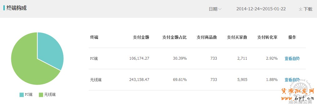 店鋪無線端的流量引入情況良好,免費流量占比較高,從直通車引入的無線流量以及下單買家數在近30天是有大幅上升,而我們直通車的無線流量所帶來的轉化也是非同凡響的。