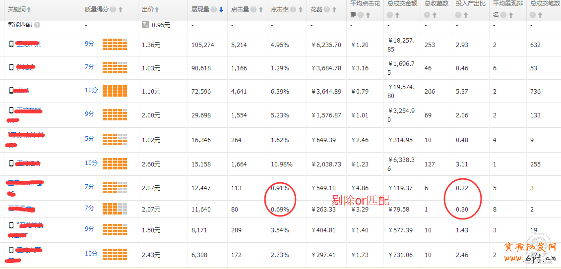 對于點擊率相對較低,轉化差的關鍵詞進行剔除,對于點擊率較低,成交較好的關鍵詞,可以通過修改關鍵詞匹配方式進行嘗試,以控制展現,提升點擊率,進而去控制ppc,提升roi數據。