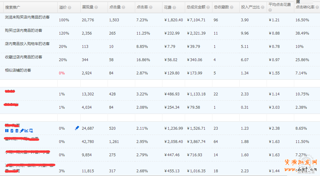 經過階段性的測試,以上數據可以明顯看到,roi數據較差的往往都是一些ppc較高的關鍵詞,同時轉化率相對較低,對于此類詞,經過測試期以及調整期過后,如果roi數據依舊較差,成交低,可以進行剔除,并擴展其他流量與轉化較好的相關詞加入補充流量;