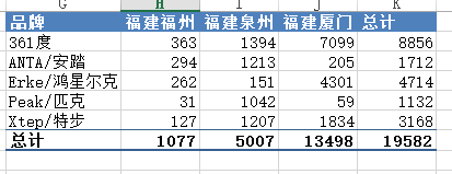 最簡單的交叉分析就做好了。可以看兩個維度下的一個總和。但是這個方法,如果數據源比較大,比如有幾十個品牌,幾十個地區,那一天寶貴的時間就要貢獻在這里了。這也是很多人抱怨工作多,工作累的原因。