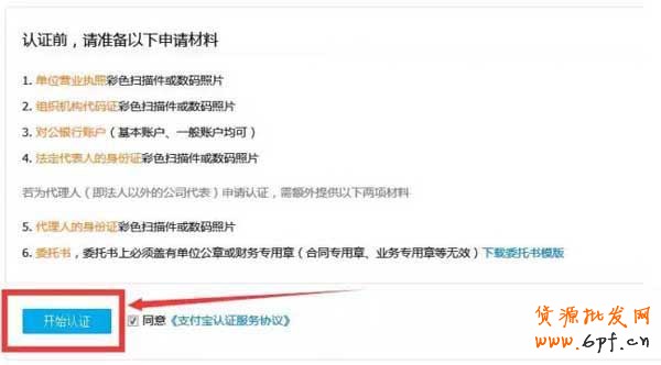 6.在認證之前,你需要準備好以下的申請材料,看下圖,需要:單位營業執照、組織機構代碼證、對公銀行賬戶、法定代表人的身份證。