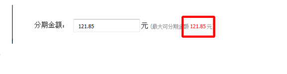 這里還有一個需要提醒的地方就是,分期還款的金額并不是沒有限制的,最大可分期金額是121.85元。