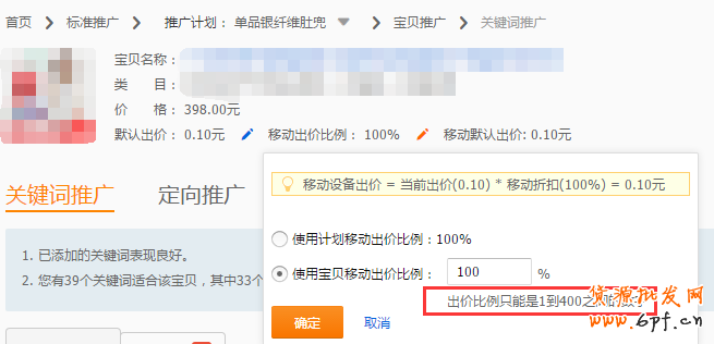 第一個(gè)變化,移動(dòng)折扣比例從之前的1-200%調(diào)整成1-400%,指的是PC出價(jià)1元,無線最高可以出4元。提升了無線的出價(jià)幅度,對于無線效果比較好的店鋪是一個(gè)好消息,當(dāng)然新寶貝推廣初期能夠在不改變PC流量的情況下,更快得用錢來獲取無線流量,對于資金雄厚的商家來說這是一個(gè)絕對利好消息,當(dāng)然,對于中小賣家或許不占優(yōu)勢,但不要急,繼續(xù)往下看。