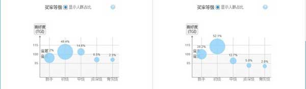 下面,我使用人群篩選器,看一下我的目標人群的情況。不同的人群,在選款和定價策略上面會有差別。這里我根據前面看到的性別丶年齡和買家等級來篩選。這里會發現不同的人群喜好是不同的。