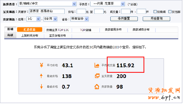 其實,這也是一個淘寶選品的方法,我們通過計算可以發現,雖然花茶的搜索人氣很高,但是成交量不大。“大麥茶”和“苦蕎茶”雖然在搜索人氣上排名第七和第五,但是成交量卻能排在第二和第三。
