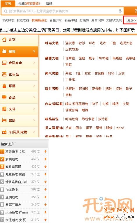 第一步進入淘寶首頁搜索框,點擊“更多”進入淘寶排行榜,如下圖所示