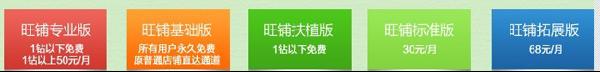 目前,淘寶網店裝修模板版本都升級成了旺鋪,具體的價格跟分類,截圖如下:
