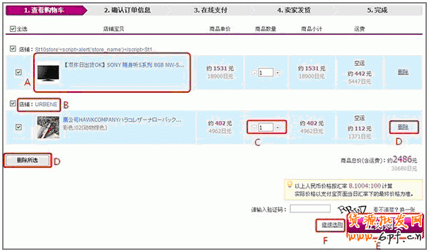 F、繼續購物:如果您還需要購買更多的寶貝,您可以點擊“繼續選購”返回到淘日本的其他頁面繼續挑選商品。