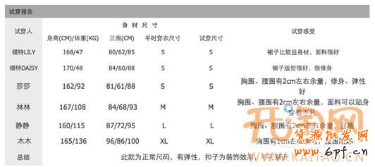 這種方式雖然描述的很詳細,但是不直觀,而且由于用戶測量方式的不同,容易產生誤差。那么應該用什么方式來彌補呢?部分賣家開始使用模特試穿報告:能夠起到一定的參考作用