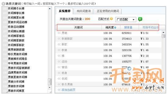系統推薦詞是淘寶根據寶貝的屬性及各方面分析給出的相關性比較大的關鍵詞,可根據搜索量、相關度、平均出價進行排序添加關鍵詞,可添加當前頁所以的關鍵詞。